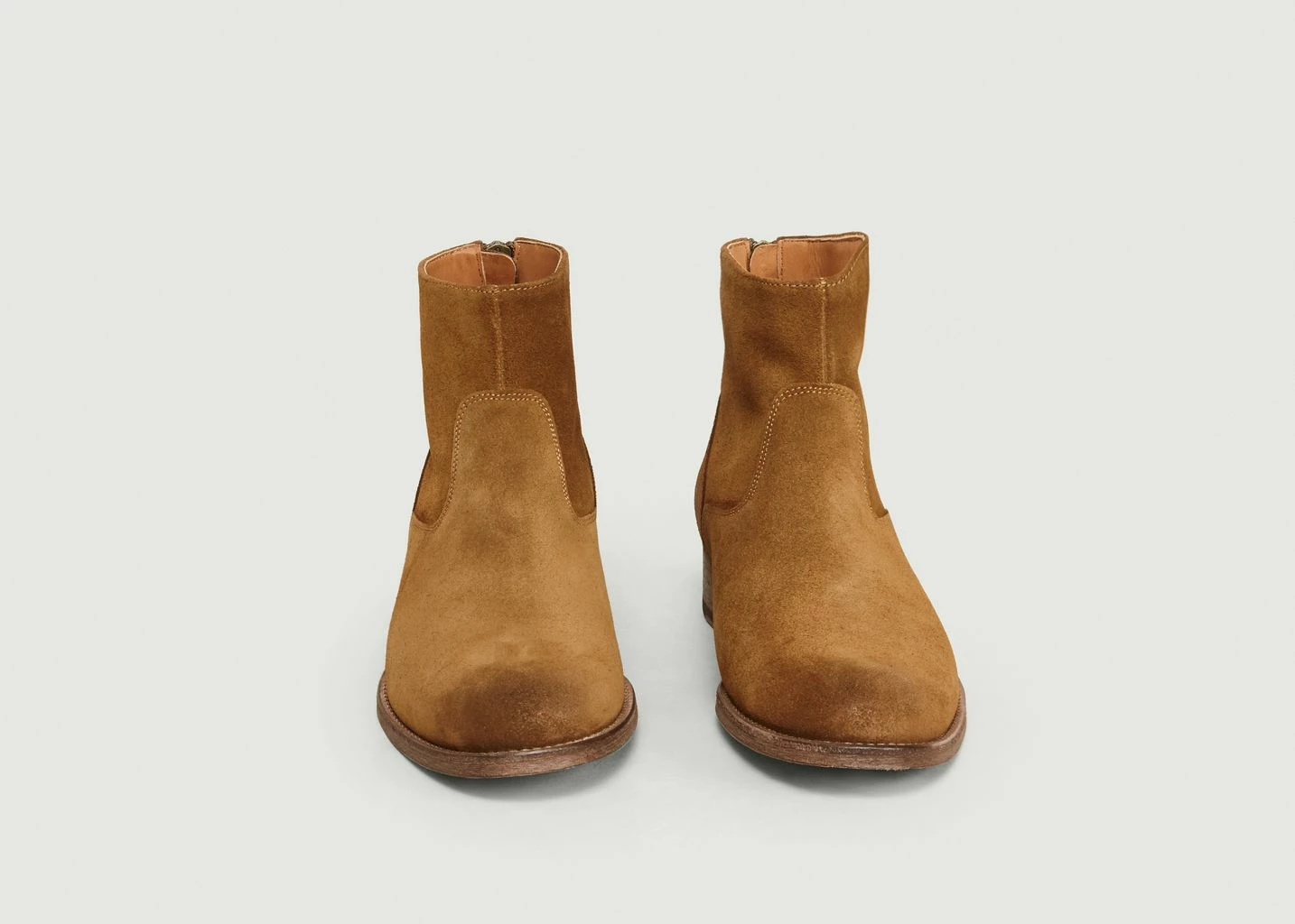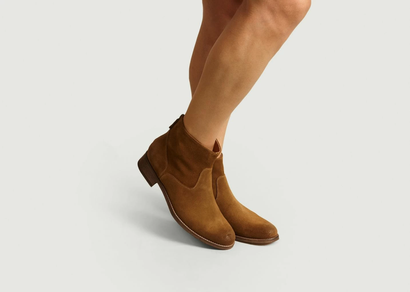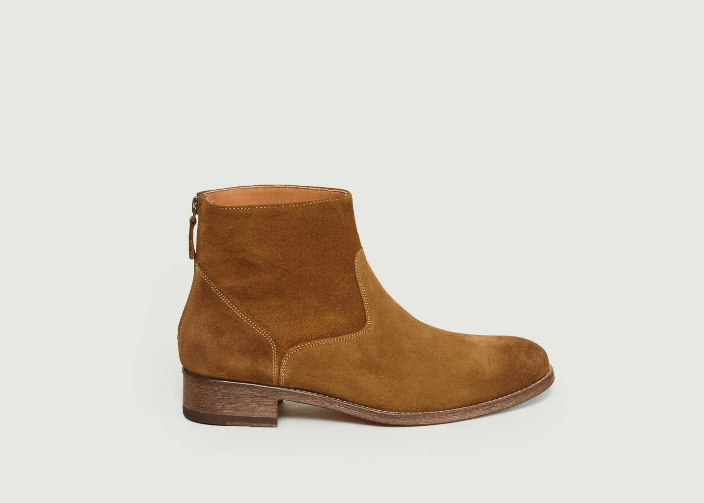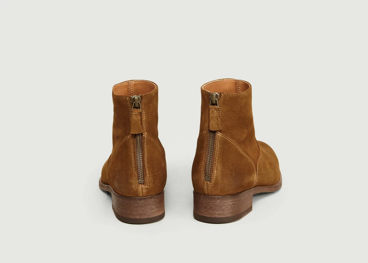 Tobacco suede leather boots, zipper at back of the heels, hand-made leather sole. Working with sober and high quality leather, Anthology Paris put its expertise to design functional and elegant shoes. Featuring minimalist and ultra-contemporary lines within a versatile color, it will soon become a must-have of your winter wardrobe.