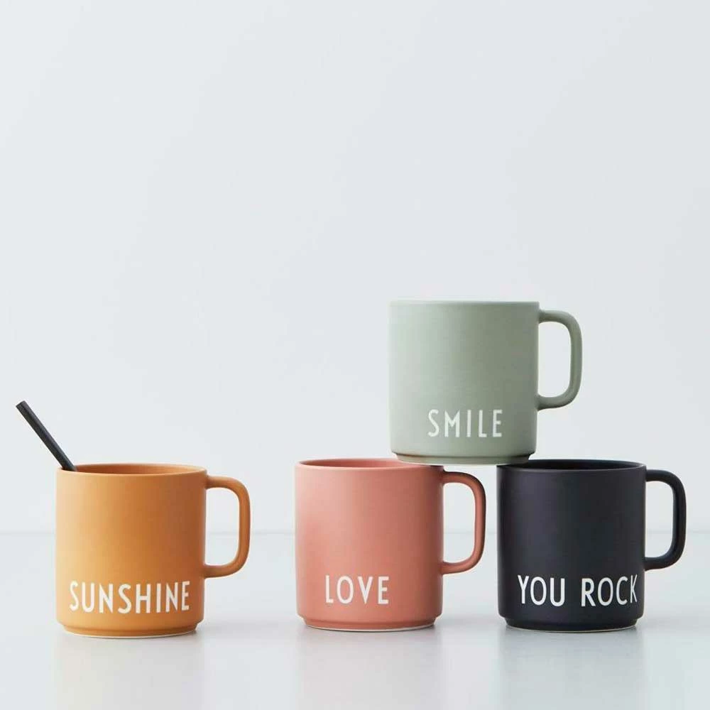 The popular favourite cup with handle. The handle is not just stylish it is also comfortable to hold. The cup is made in high quality matt glazed fine bone china porcelain with laser engraved letters. A safe gift hit for birthdays, christmas, graduation, weddings & housewarming. H. 8.5 cm. D. 8 cm. Handle inner dimensions: H. 4.3 x w. 1.8 cm. Matt glazed fine bone china, laser engraved letters. Typography: Arne Jacobsen’s vintage abc.