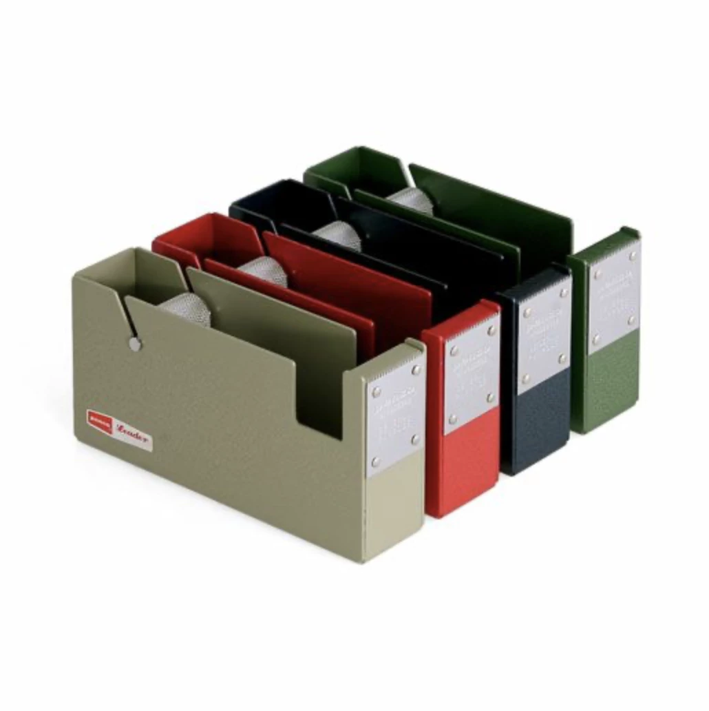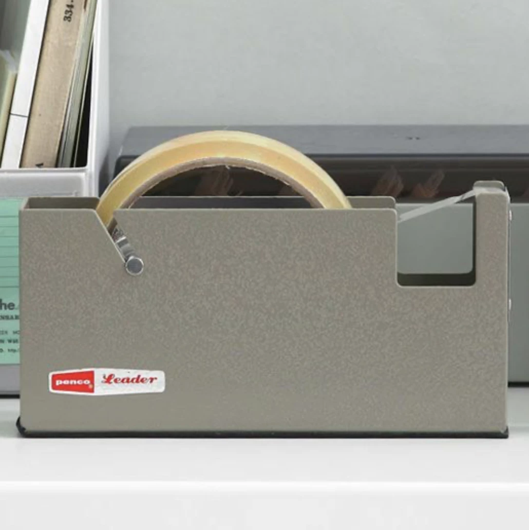 Simple, rugged, all-metal construction Penco tape dispenser with a weighty tape holder. Can be mounted onto a wall or used on your desk. A thing of simple, industrial charm.