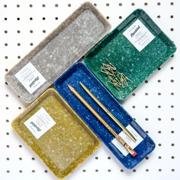 These desk tray by Hightide are good for your workspace or entryway. Tactile and glossy. Available in grey or blue.