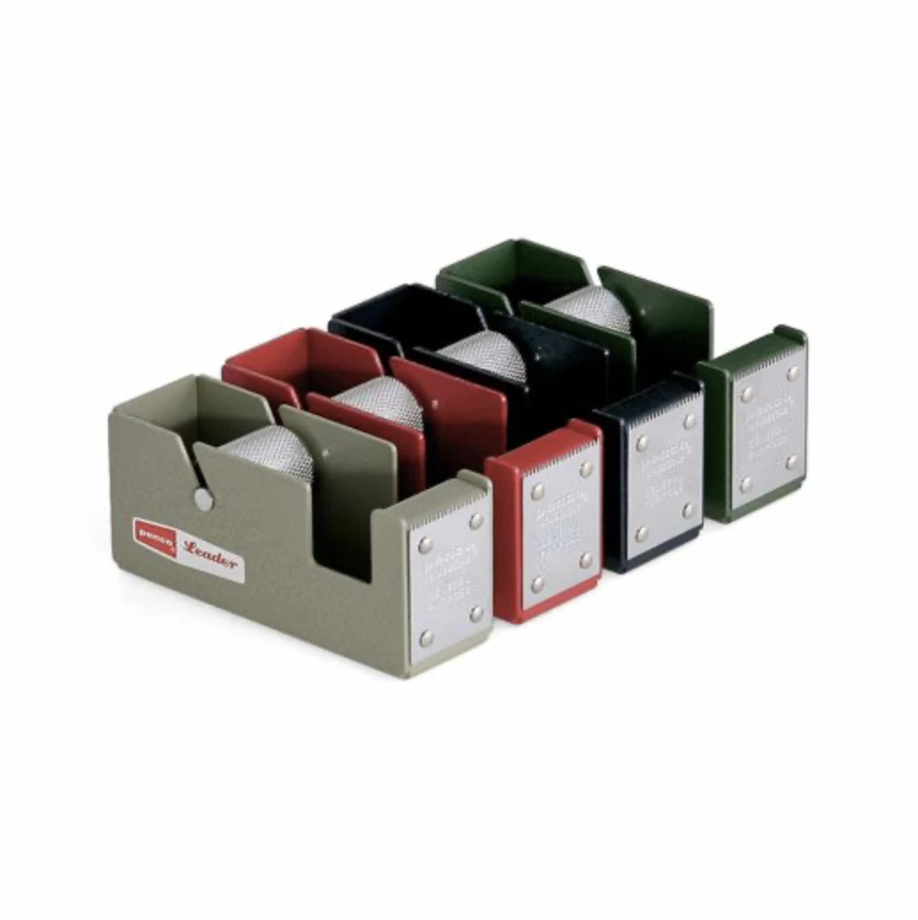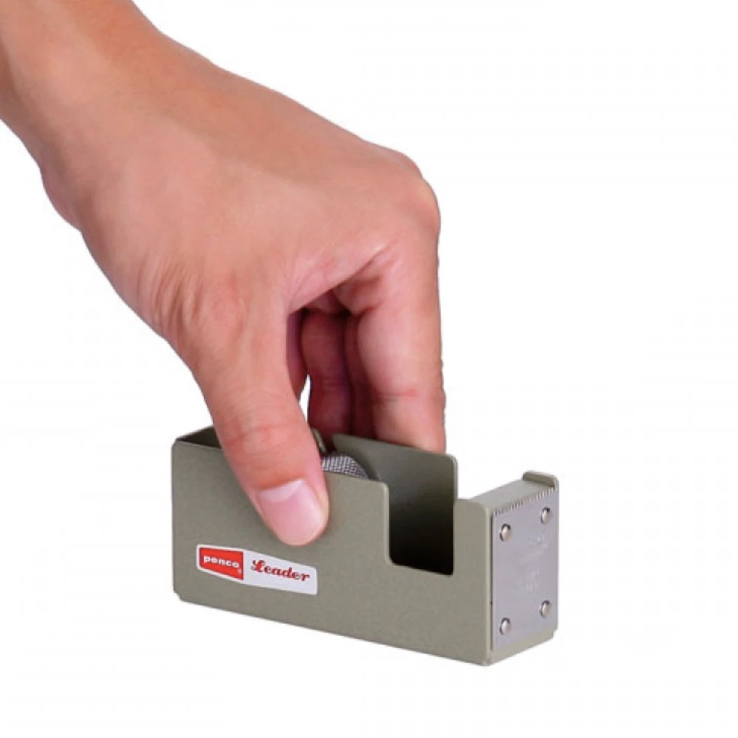 Simple, rugged, all-metal construction Penco tape dispenser with a weighty tape holder. Can be mounted onto a wall or used on your desk. A thing of simple, industrial charm.