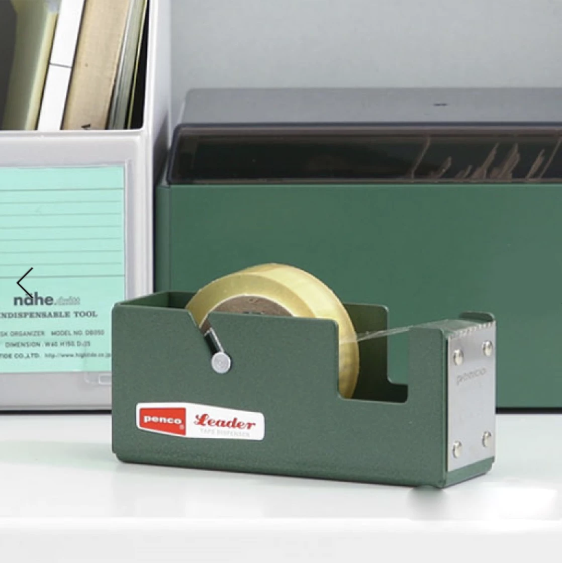 Simple, rugged, all-metal construction Penco tape dispenser with a weighty tape holder. Can be mounted onto a wall or used on your desk. A thing of simple, industrial charm.