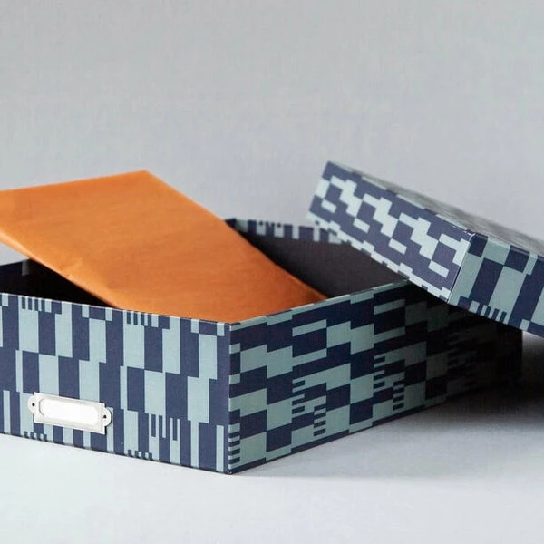 Made by hand in the North of England, these Archive Boxes are crafted in Ola’s signature Patterned Papers. A beautiful alternative to the usual run-of-the-mill archiving options, these handcrafted boxes are truly special. Ola’s Large Archive Box is perfectly sized to hold documents up to A4. Use yours for organising paperwork, storing photos or mementoes, or as a gift box that can then be repurposed and kept by the recipient. Each is presented with a detachable, magnetic label holder to make categorisation a doddle. We’ve included 2 sheets of acid-free tissue paper so you can protect what’s stored inside. They are the perfect patterned addition to any desk or library – multipurpose and designed to be reused year after year. Crafted by hand in the UK Made with vegetable-based inks & FSC certified paper stocks 320 x 230 x 85 mm (to fit A4) Ola is a British paper goods brand established in 2013 by designer Katy Goutefangea. Working exclusively with UK makers, ola produce beautiful everyday items with an emphasis on craft, quality and traditional manufacture. Each item is a celebration of pattern and simplicity. Informed by elements of architecture and abstract geometry, and inspired by artists such as Sol Lewitt, Anni Albers and Donald Judd. Using age-old processes, such as stitching instead of glueing and ink laid with a roller, each piece has an individual distinction, charm and character that can only come from traditional craftsmanship.