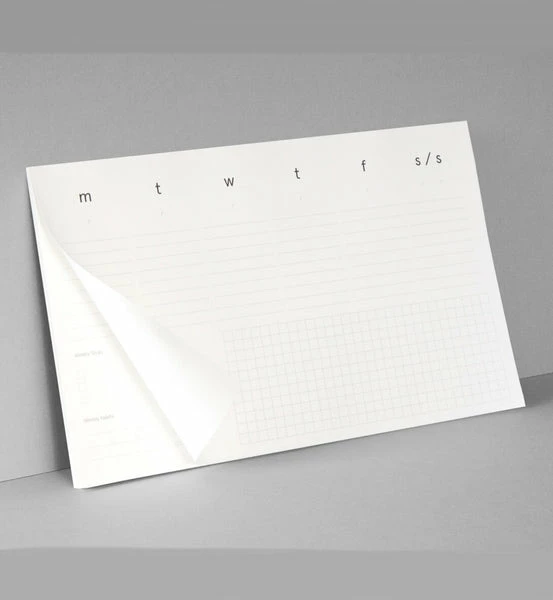 Weekly Desktop Pad features 52 undated weekly spreads in a unique rectangle shape based on the Golden Ratio. The minimal but practical layout of Ola’s Desktop Pads has been carefully thought through to help structure and manage work and life, particularly useful when adapting to working from home. It features columns for daily plans, goal prompts, a habit tracker and a grid for notes. The pages are crafted using the same carefully selected 100gsm soft white paper as our notebooks. They take drawing ink beautifully and are wonderfully smooth to write on, offering a practical tool for any desktop. 52 undated weekly spreads Weekly goals & habit tracker Grid for your notes Made with FSC certified paper stock Crafted in the UK 290 x 180 mm Ola is a British paper goods brand established in 2013 by designer Katy Goutefangea. Working exclusively with UK makers, ola produce beautiful everyday items with an emphasis on craft, quality and traditional manufacture.