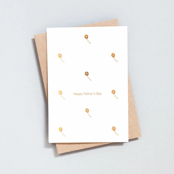 Happy Father’s Day Card. Each card from Ola’s Motif collection features a foil blocked minimal design. Printed by hand in copper foil onto premium 300gsm paper stock made from cotton fibres. Blank inside for your own message. Packaged in biodegradable cellophane Recycled kraft envelope Handmade in the UK 152 x 105 mm (A6) Contemporary design by Ola, founded by Katy Goutefangea. Each is made with carefully chosen materials that are kind on the environment and traditionally printed by hand in Ola’s sunny Bristol studio with fully recyclable foil onto beautiful FSC certified 270gsm card stock and comes partnered with a premium white envelope. Printed by hand in the UK 148 x 105 mm (A6)