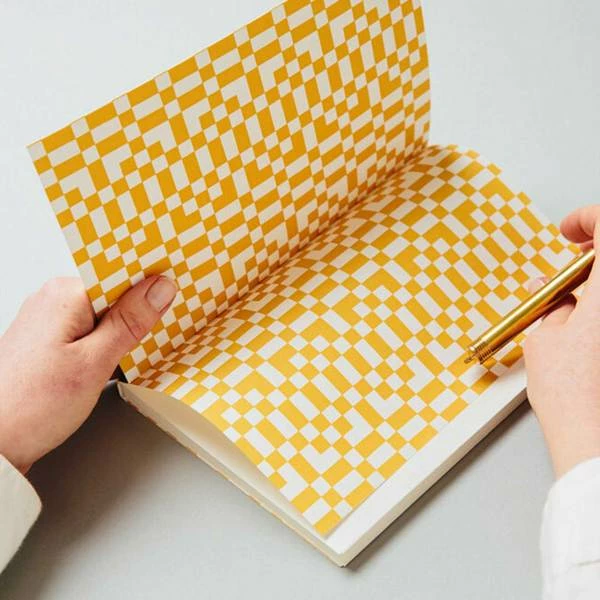 Layflat Pocket Notebook in Forest featuring endpapers in Rust Otti print. Part of Ola’s limited edition range celebrating the women of the Bauhaus, inspired by the iconic weaving workshops they occupied. Ola’s Layflat Pocket Notebook is the perfect companion, the ideal size for jotting down notes on the go. It’s made with the same signature binding as their original Layflat Notebook, allowing the spine to open fully and you to work across any two pages, so there’s no compromise on space for your sketches or notes. With 128 pages their Pocket Notebooks are more substantial than most petite alternatives, whilst still fitting comfortably into any pocket or bag. The premium 300gsm embossed cover has been printed in a way that’s kind to our environment using vegetable-based inks. Inside, the soft white pages are a substantial 100gsm in weight, meaning they’re a joy to use and also fountain pen friendly. Thoughtfully made in the UK by a family run bindery using FSC certified papers.